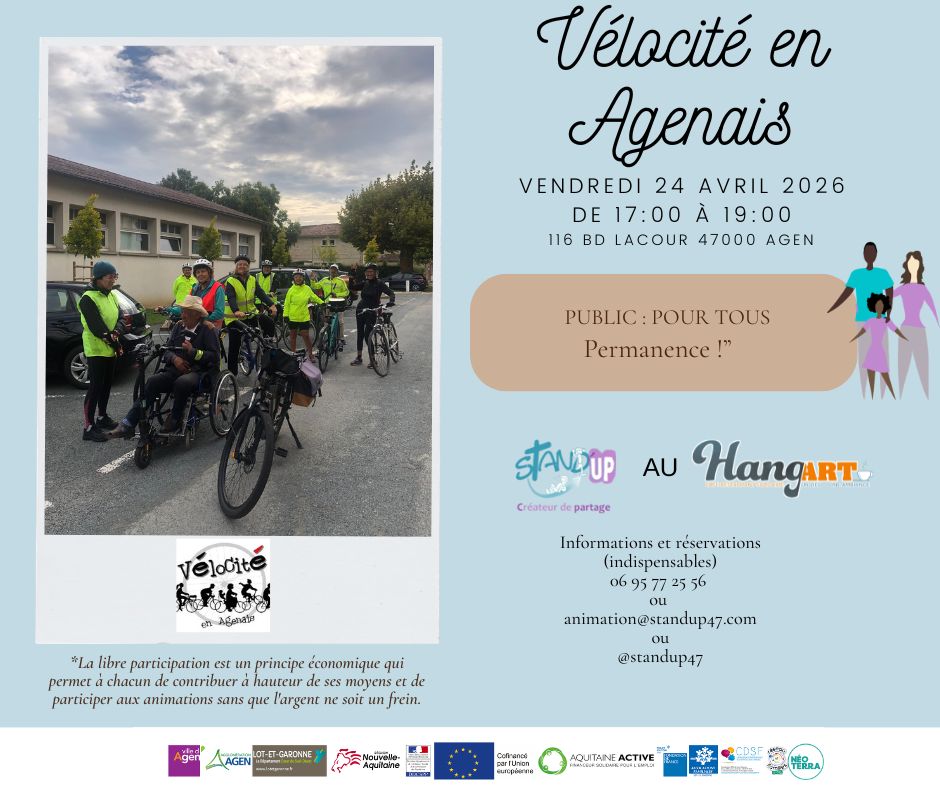 Vélocité en Agenais est une association animée par des bénévoles qui promeut et défend les intérêts des cyclistes sur l’Agglomération d’Agen.