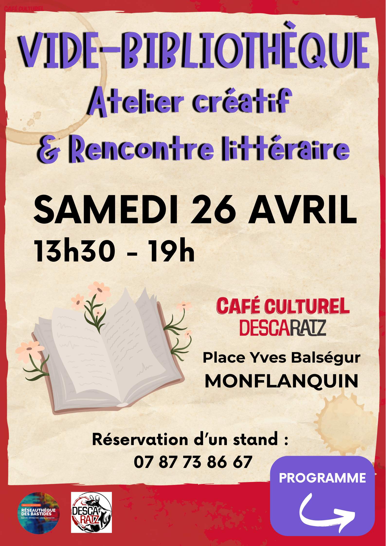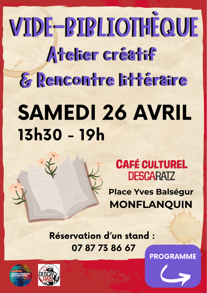 Rendez-vous Samedi 26 avril à Descaratz à Monflanquin, pour un après-midi chaleureux autour du livre et de la créativité !