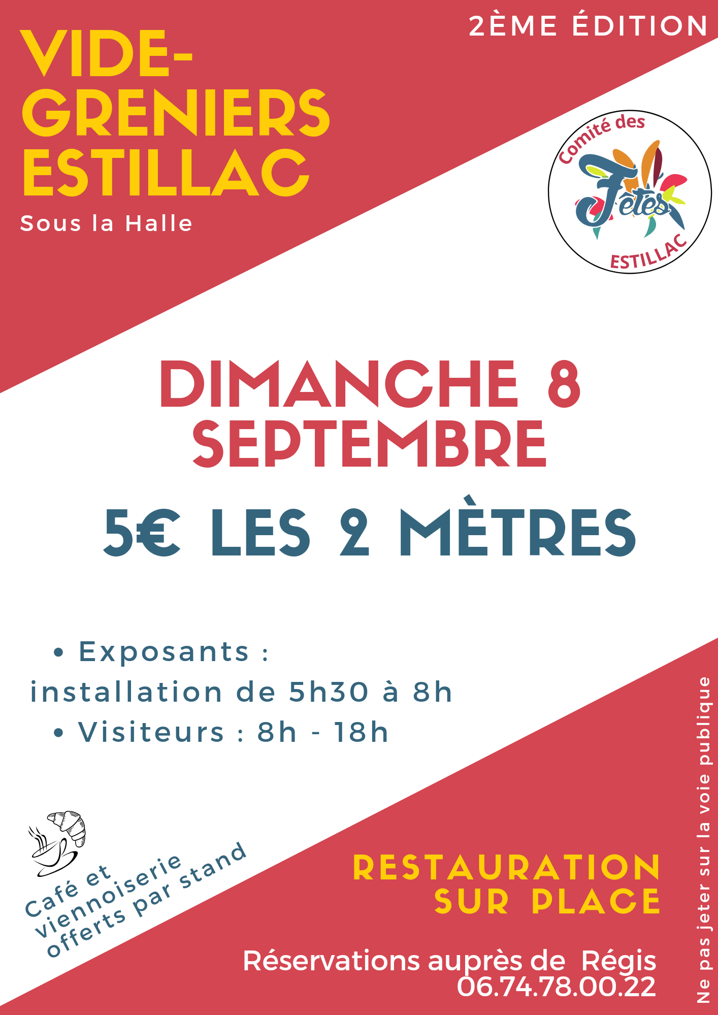 Pour réserver votre emplacement, appelez Régis au 06 74 78 00 22 ou par mail à : comitfetestillac@outlook.fr ou rdv à la buvette le jeudi !