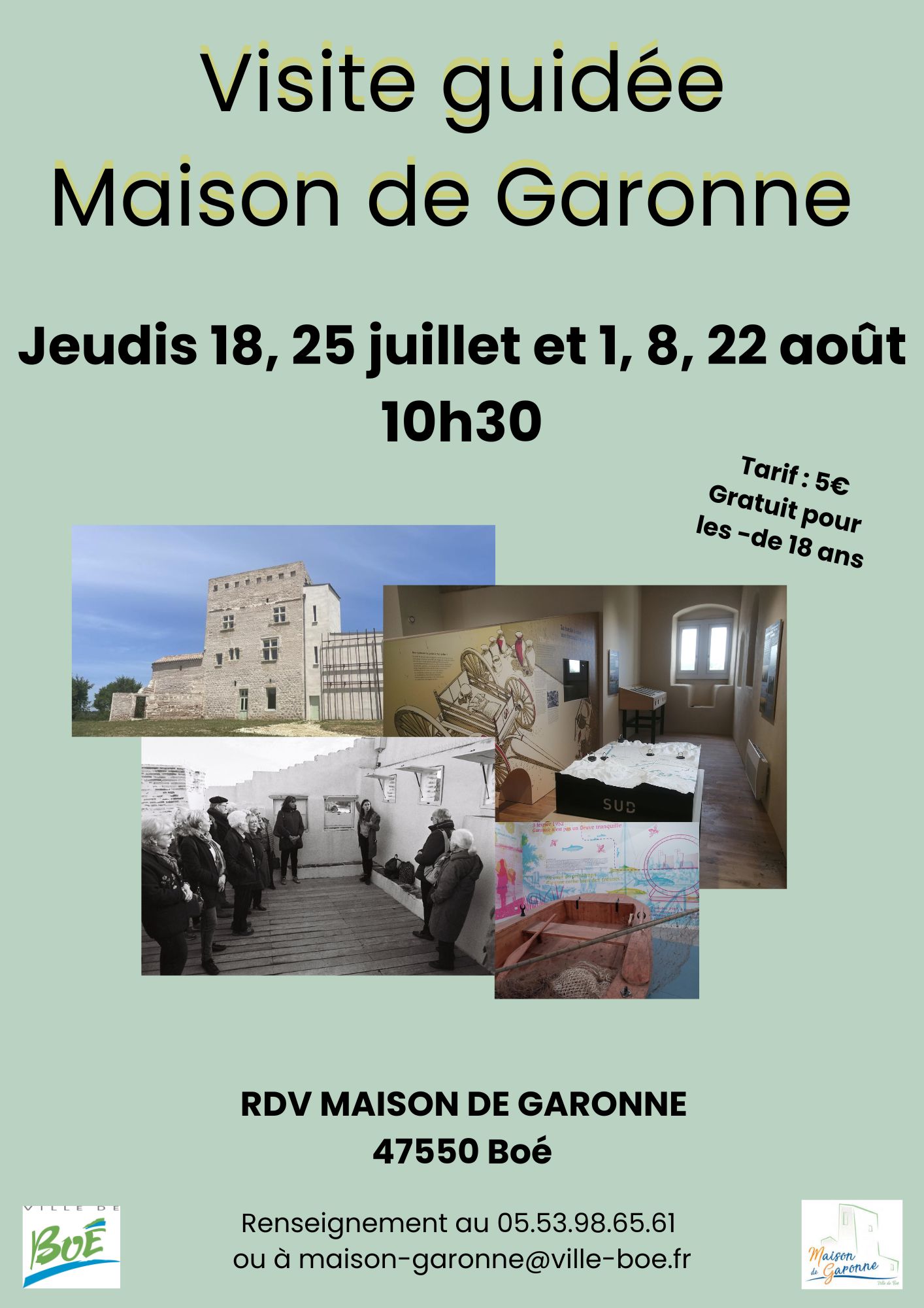 Du 18 juillet au 22 aout : Visites guidées estivales de la Maison de Garonne.