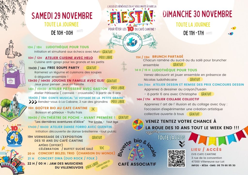 À l’occasion de ses 10 ans, le Café Cantine a le plaisir de vous convier à un week-end festif placé sous le signe du partage, de la convivialité et de l’engagement citoyen.