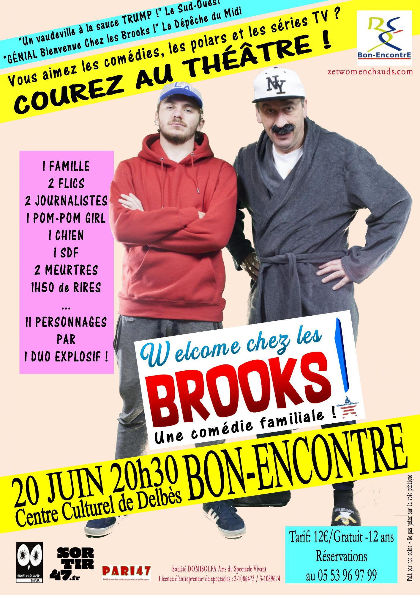 Courez au théâtre pour découvrir les aventures tragi-comiques d’une famille d’Américains très moyens ! Un mari cocu et chômeur, une épouse vénale et infidèle, un fils poursuivi par la Police, une fille pompon girl amoureuse des réseaux sociaux et de sa meilleure amie, un sdf infortuné, un duo de policiers plus futé qu’il ne le parait sans oublier le chien de la famille et le couple de voisins… 11 personnages déjantés joués par 2 comédiens irrésistibles !