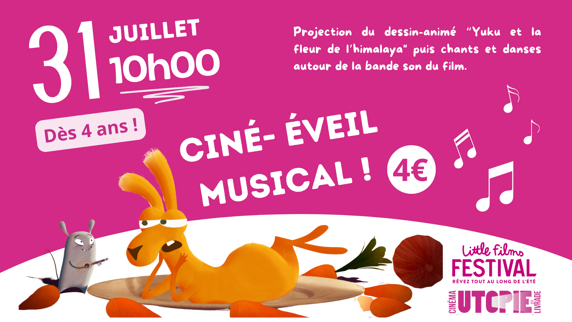 Dans le cadre du « Little Film Festival », projection du dessin-animé Yuku et la fleur de l’Himalaya (1h05, dès 4 ans).